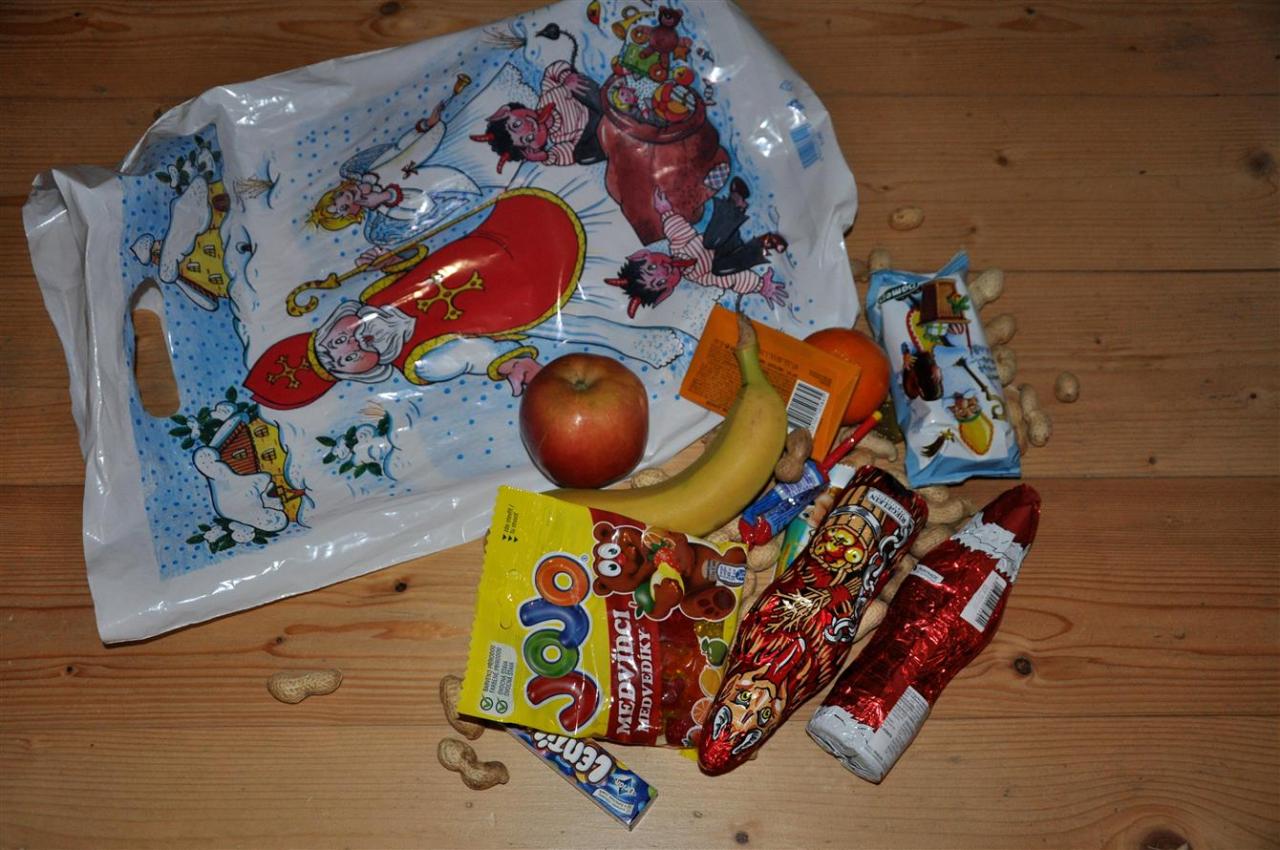 Mikuláš, anděl a čerti vycházeli jako obvykle 5.12.2017 po páté hodině s balíčky pro děti od obecního úřadu