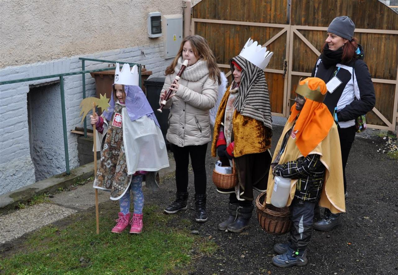 Zapečeťěnou kasu a kostýmy zařídila Kateřina Medalová. Jako Tři králové šli Eliška Horholová, Barunka Pánková a Štěpánek Medal, na flétnu hrála Michalka Medalová, další doprovod byl Vojtík Henzl, Katka Medalová a Jana Henzlová fotila. Vybrané peníze putují do Hospicu sv. Jiří v Chebu, pro drobnou pečovatelskou službu u osamělých seniorů, na podporu integrace lidí bez domova a jako finanční podpora sociálně slabých rodin s více dětmi.