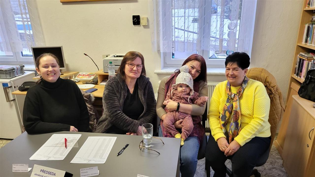 Volební komise s malou Jaruškou Večeřovou