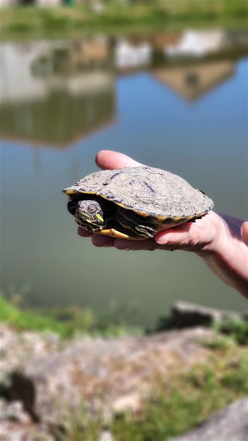 Želva v obecním rybníku